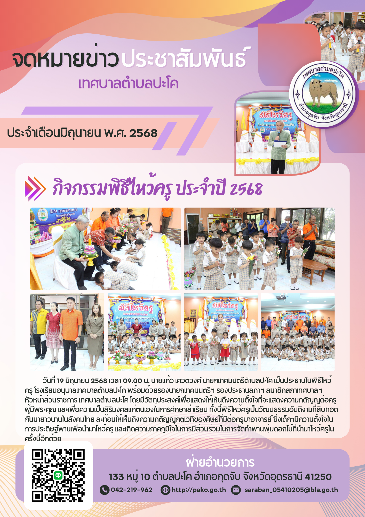 จดหมายข่าวประชาสัมพันธ์ ประจำวันที่ 20 มิถุนายน 2568 เรื่องประชุมสภาเทศบาลตำบลปะโค สมัยสามัญ สมัยที่ 2 ประจำปี พ.ศ.2568