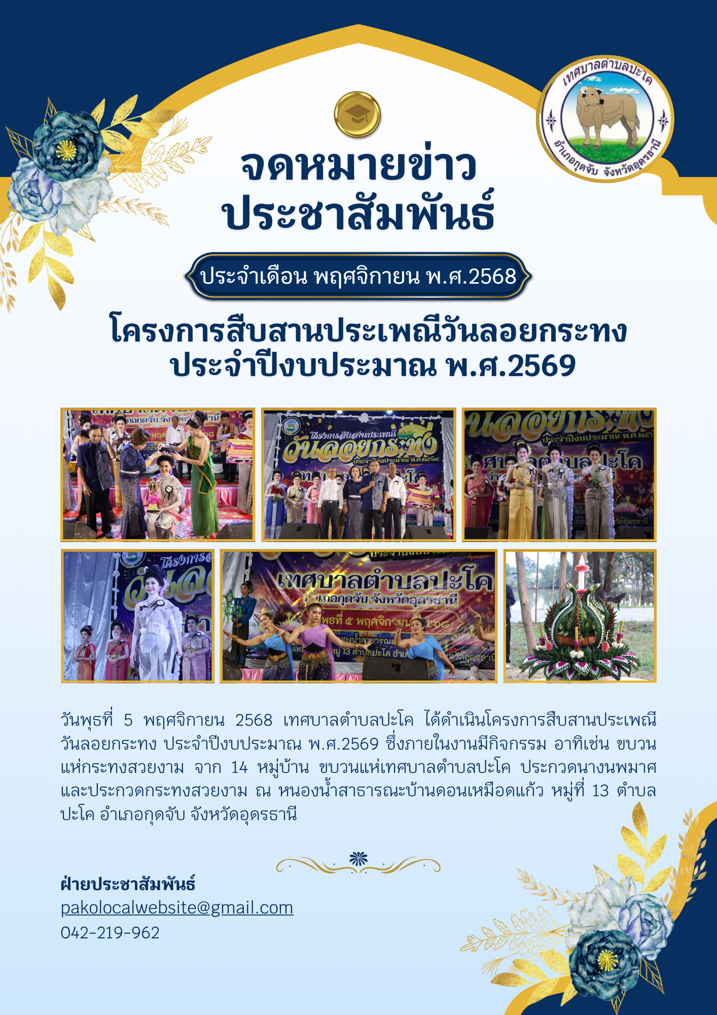 จดหมายข่าวประชาสัมพันธ์ โครงการสืบสานประเพณีวันลอยกระทง ประจำปีงบประมาณ พ.ศ.2569